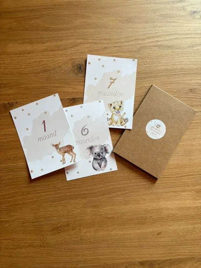 Maak van elke bijzondere mijlpaal in het eerste levensjaar van je baby een onvergetelijk moment met onze mijlpaalkaarten met babydieren. Deze prachtige kaarten zijn speciaal ontworpen om de groei en ontwikkeling van je kleintje vast te leggen – van de eerste maand tot de eerste verjaardag.