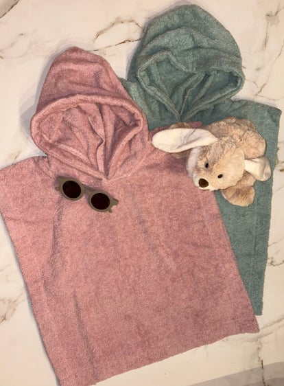 Heerlijk zachte poncho 100% katoen, in de kleuren lichtroze en groen.